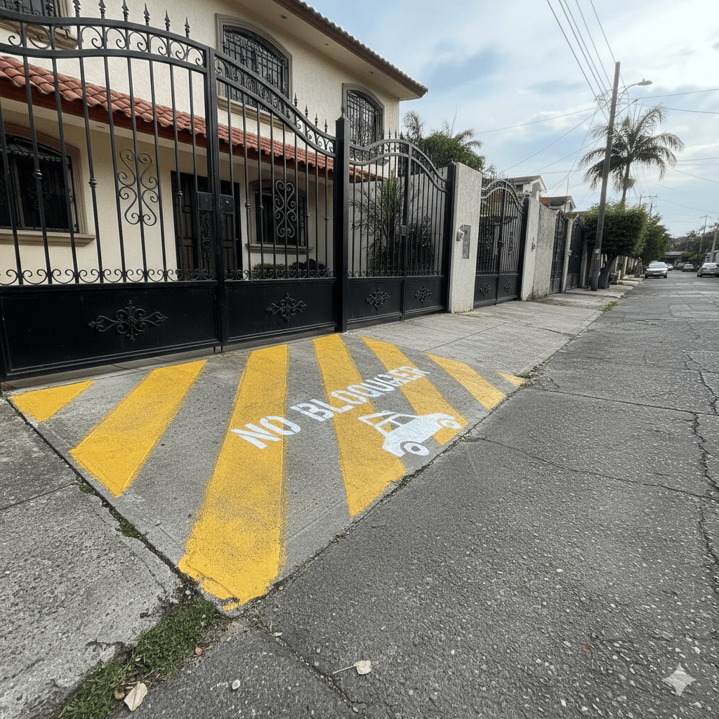 Si no marcas tu territorio, la gente asume que puede usarlo. BLINDAJE VIAL es la solución definitiva para instalar autoridad en tu fachada. No solo pintamos rayas; creamos una barrera psicológica y legal para que nadie se atreva a estorbar.